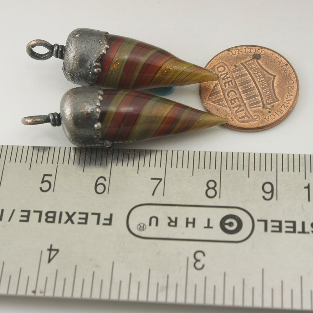 These are made with handmade lampwork glass and copper electroforming. Measurement includes the loop.
